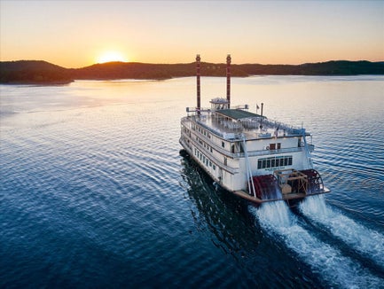 All aboard Silver Dollar City's Showboat in Branson, Missouri, a classic Branson dinner cruise on Table Rock Lake featuring a live variety show and a three-course meal. The multi-deck showboat offers scenic Ozark views and an indoor theater-style production filled with music, comedy, and crowd-pleasing moments for guests of all ages.